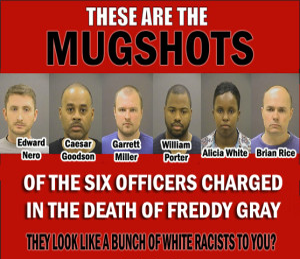 Simple minded memes based on many of the assumptions above made their way around social media upon the arrest of six officers for the murder of Freddie Gray. The fact that three of the six officers are black is portrayed as a confirmation that racism is not an issue in this case and in all previous cases.