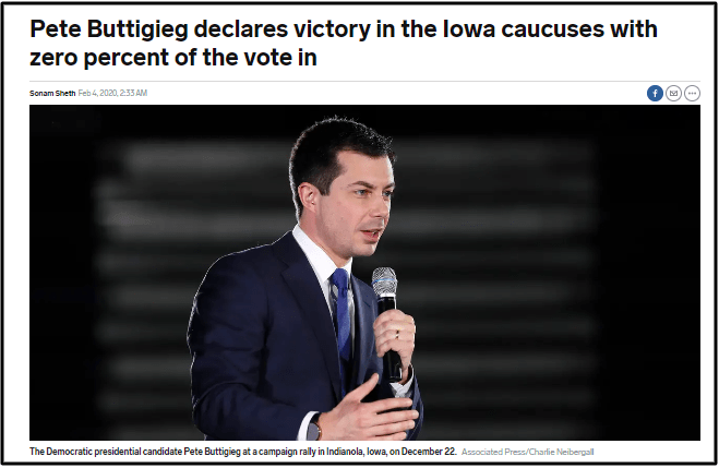So after numerous “mistakes” in the Iowa iCaucus, all of which seemed to be to the detriment of Bernie Sanders, the Democratic Socialist still received the most votes and stands at a virtual tie in delegates with the creamy candidate from South Bend. So what was the big story? Pete Buttigieg wins in Iowa!