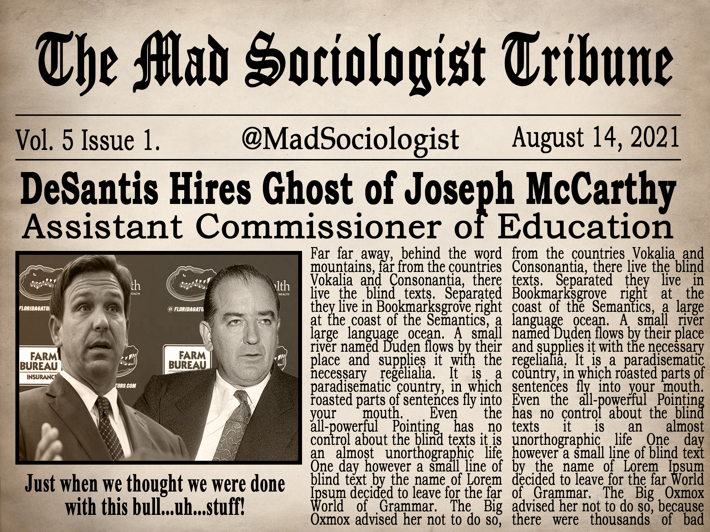 This video addresses the Critical Race Theory debate directly, then moves into addressing the larger theme. In the end, it’s a debate between censorship and academic freedom. The Ghost of Joseph McCarthy is residing in the miasmic soul of Gov. Ron DeSantis.