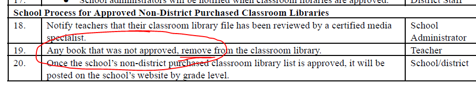 When I inquired on the discrepancy between what Dr. Bernier said in the video and directions given in the email, I was informed that the district wants teachers to go through the process rather than just saying “screw it” and eliminating their classroom libraries.