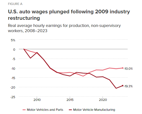 However, those same workers during that same time have experienced a twenty percent decrease in real wages. When you hear that GM has offered the UAW a “sweet” deal of twenty percent increase in wages, you have to understand that they are doing nothing more than raising wages to what they were in 2009.
