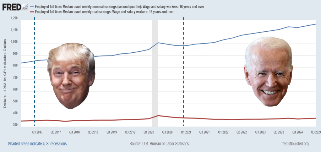 Americans made some significant wage gains under Biden. Unfortunately, much of those gains were eaten up by inflation. Can the President Elect do better? If the past is preview…