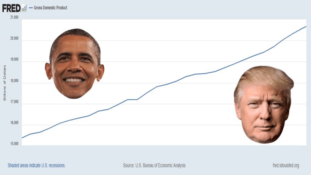 Eh. It was okay. We were starting to feel the relief from the long, slogging recovery we made from the Great Recession. Looking at GDP growth and other economic indicators between Obama and the MAGA MESSiah, it’s impossible to say where one ended and the other started.
