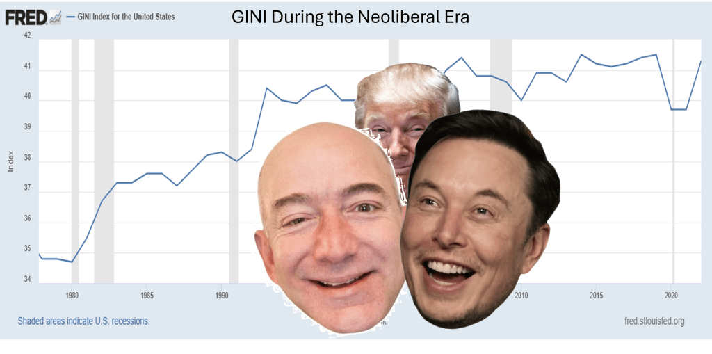 Why doesn’t it change? Well, in short, because the economy as it is benefits the 1%. Do you think President Muskaswammy has any intention of DOGEing that fact?