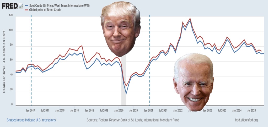 Then there’s oil prices. Remember, we’re going to drill, baby, drill!