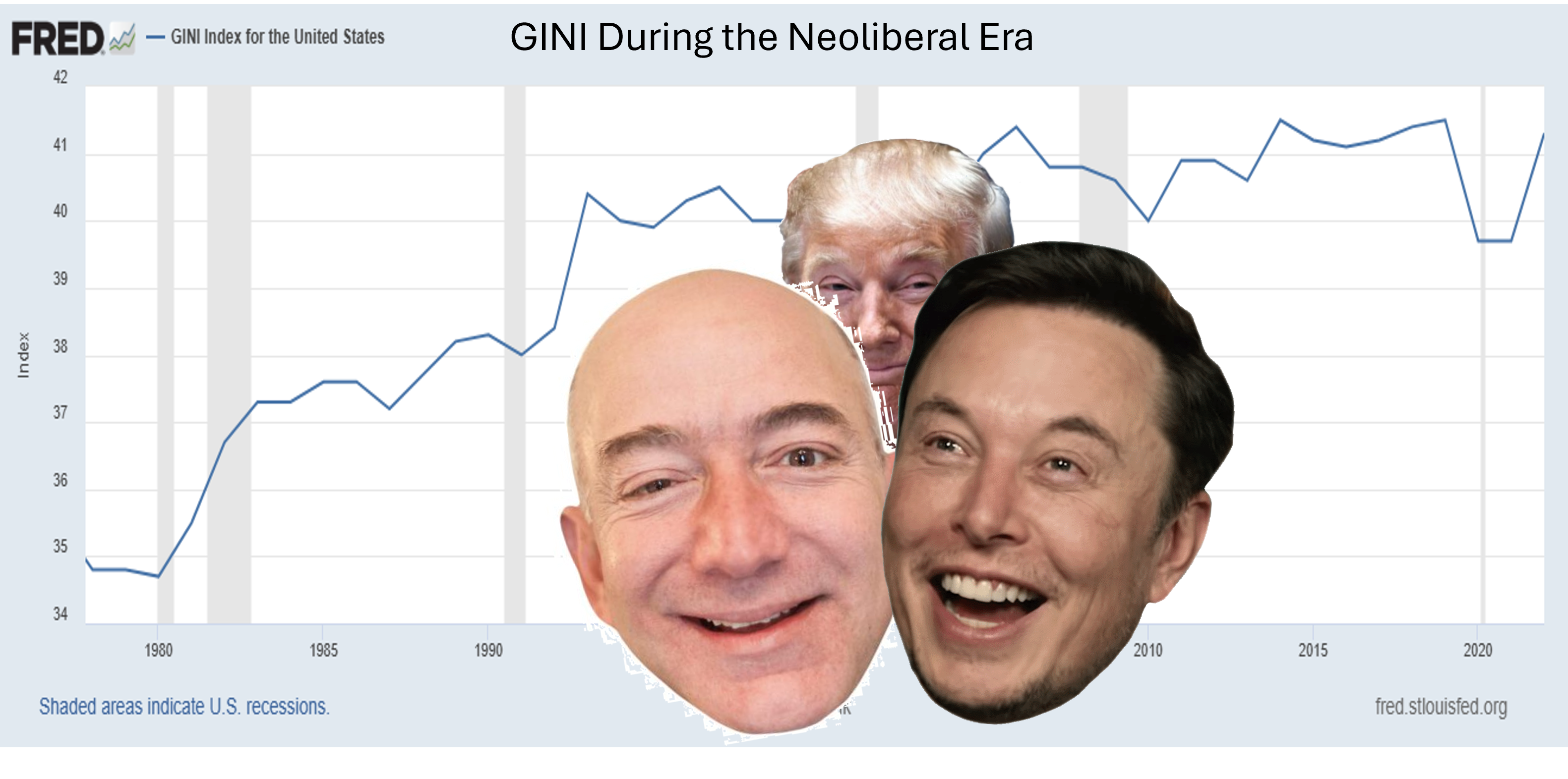 Why doesn’t it change? Well, in short, because the economy as it is benefits the 1%. Do you think President Muskaswammy has any intention of DOGEing that fact?