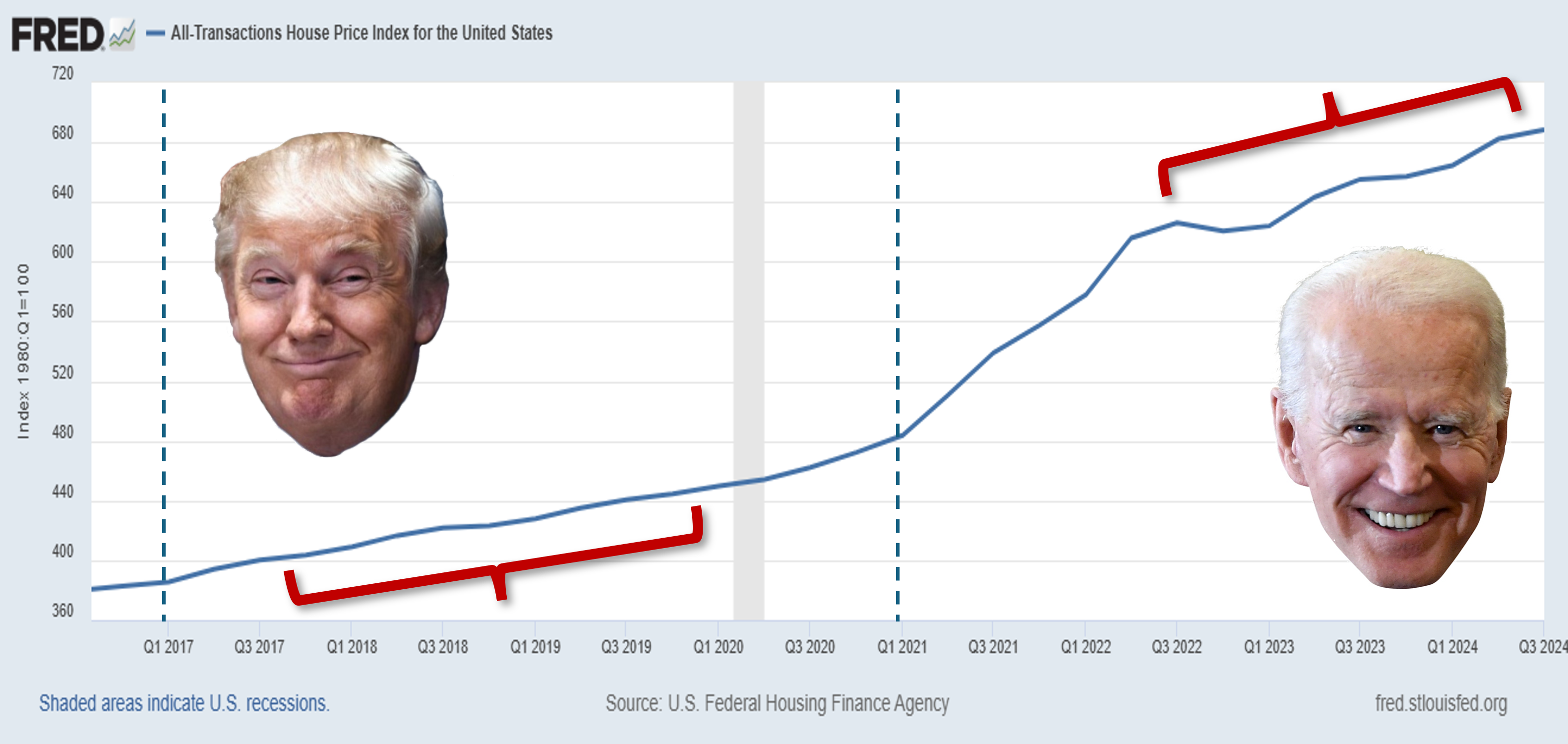 Housing was a huge problem for the Biden and then the Harris campaign. Harris had a proposal. Her opponent’s proposal was to deport brown people and put their empty houses on the market. Of course, those same brown people are the ones who build the houses…
