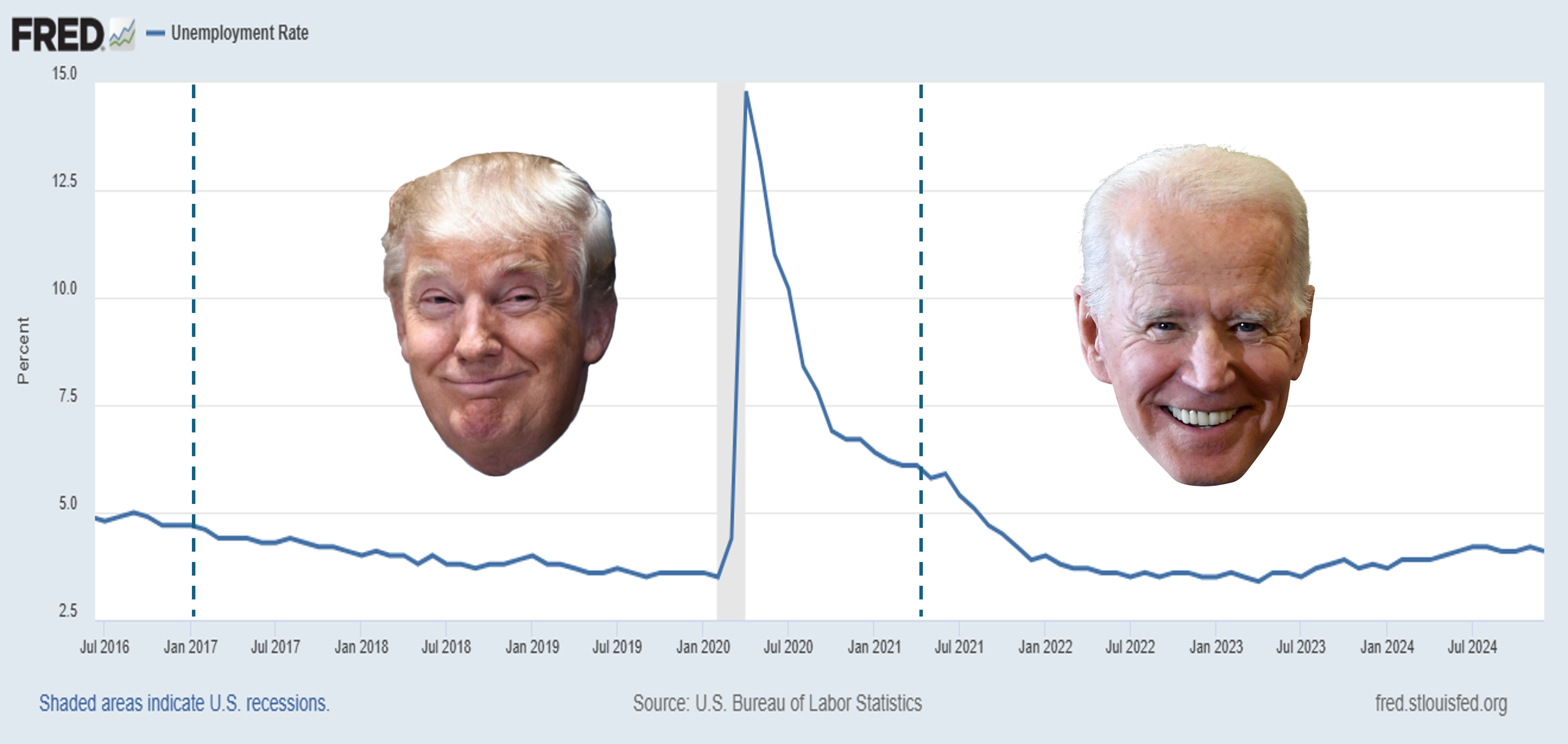 The reality is that for the standards of the Neoliberal Era and considering the fact that we went through an inflationary spike that lasted a couple of years, the United States economy has looked pretty good. Indeed, it’s the envy of the advanced world. President Theyletmedoit has promised that he can do better. In 2017, he inherited a solidly growing economy and did not screw it up. He also didn’t improve on it. He made some minor changes and slapped a new name on it, (NAFTA/USCMA). The truth is that the economy that Biden inherited was destabilized by the pandemic but was largely the same economy that his predecessor inherited. This was not good news to Americans who had to weather the inflationary spike only to find themselves in the same precarious position they were in before the pandemic.
