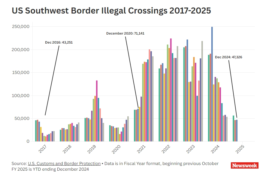 By all accounts, the program was a success. The app served almost 1500 migrants a day, and almost a million have been able to enter the country legally. This was an integral part in the dramatic decrease in border crossings toward the end of Biden’s presidency. Indeed, CBP One is a big reason why Orange Grift will inherit a better immigration situation than he left in 2020.5